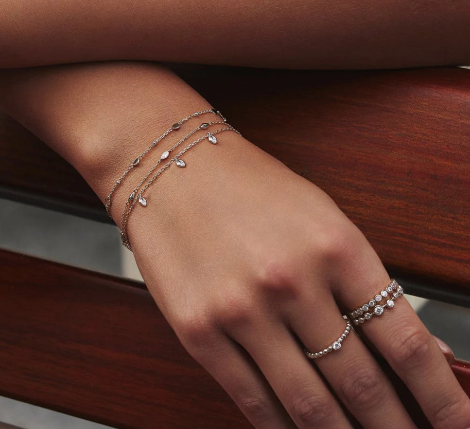 Vontreskow Sterling Silver Pink Opal Heart Bracelet