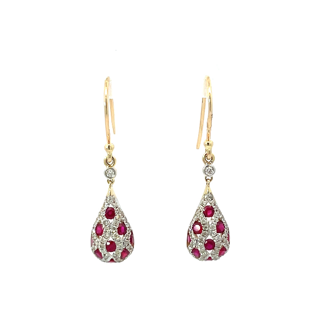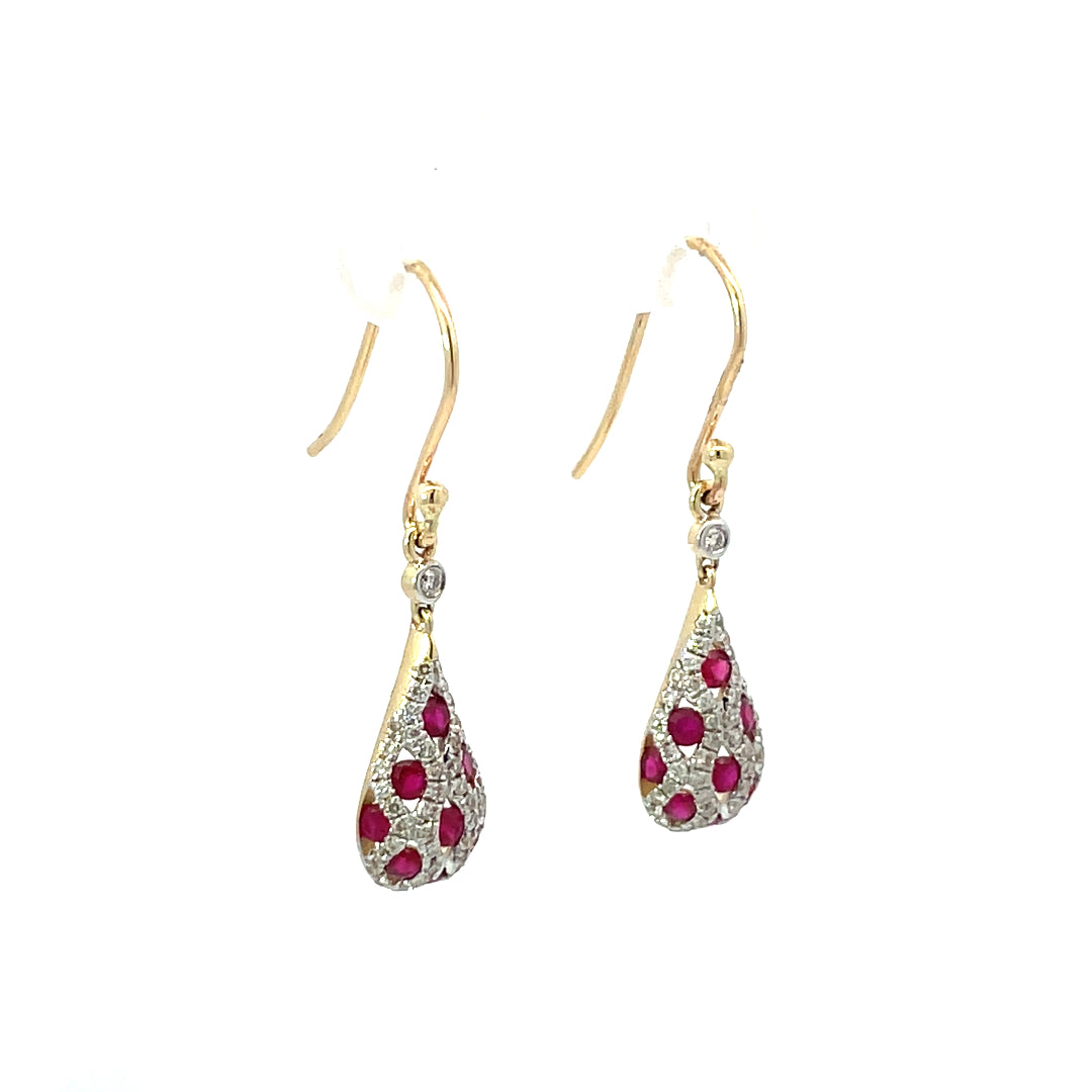 9ct Yellow Gold Ruby & Diamond Earrings