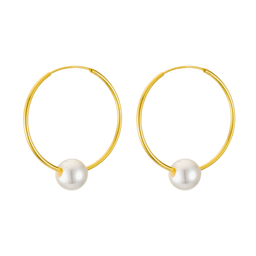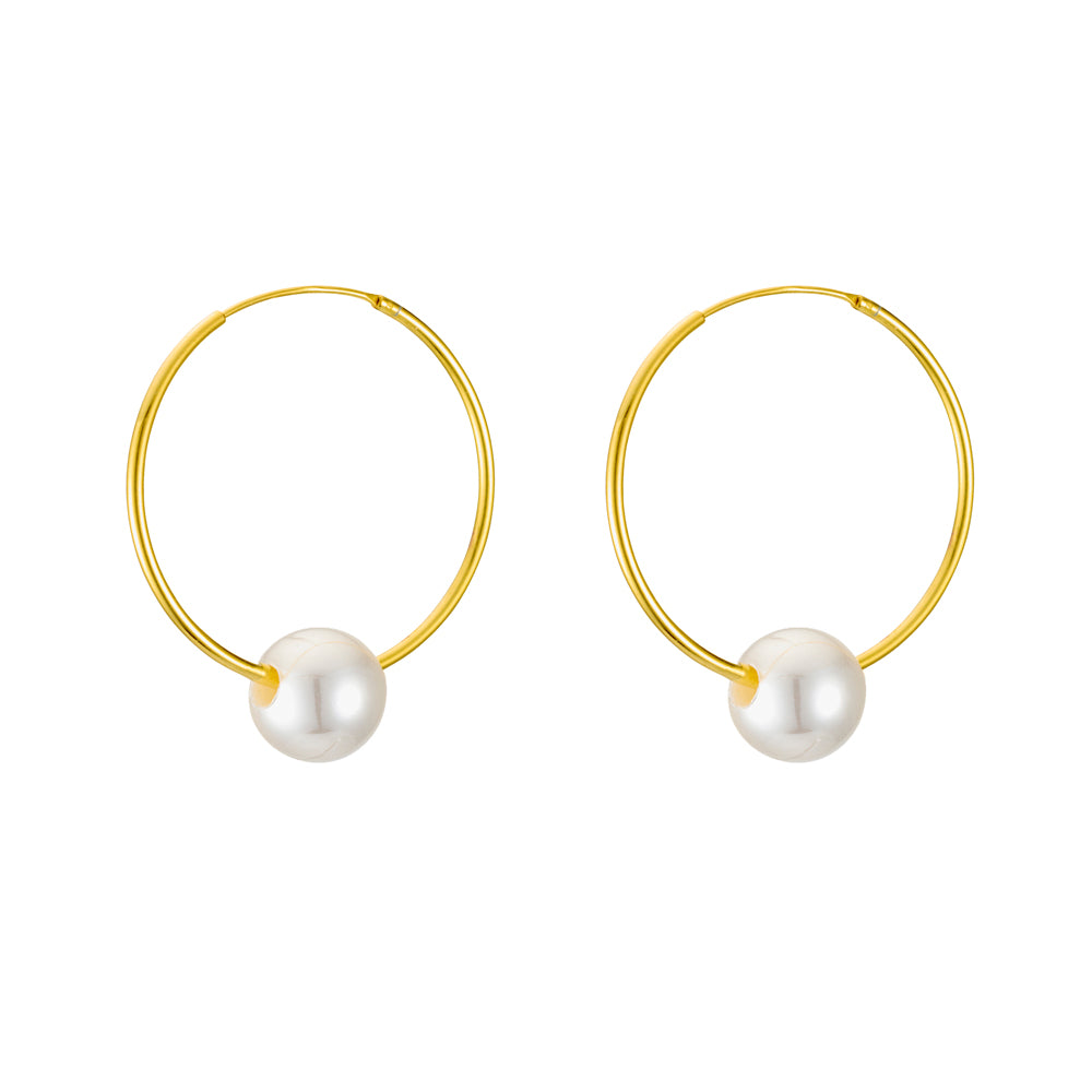 Gold Plated Oblong Earrings With Pearl Drop