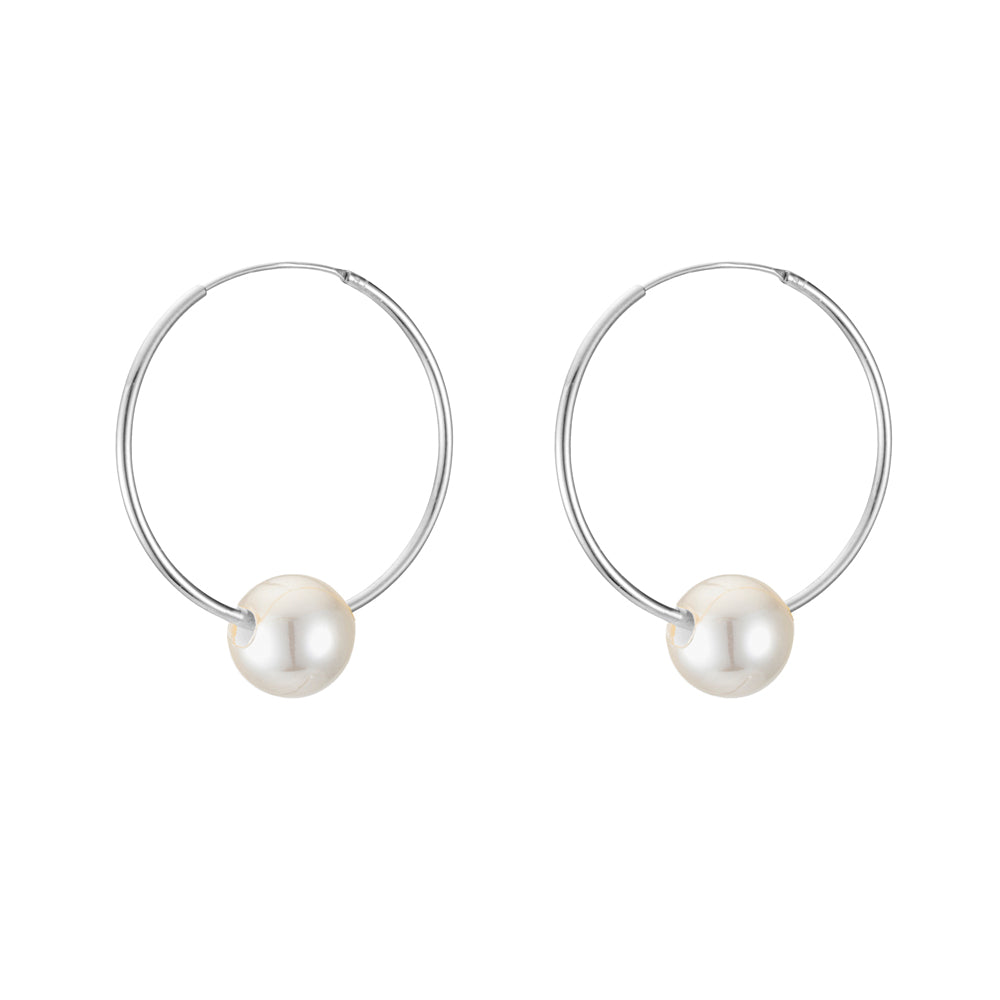 Sterling Silver Oblong Earrings With Pearl Drop