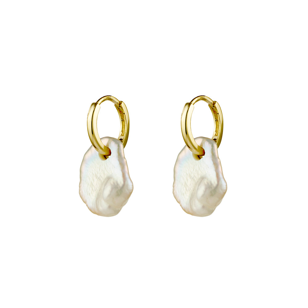 Gold Plated Pearl Huggie Earrings