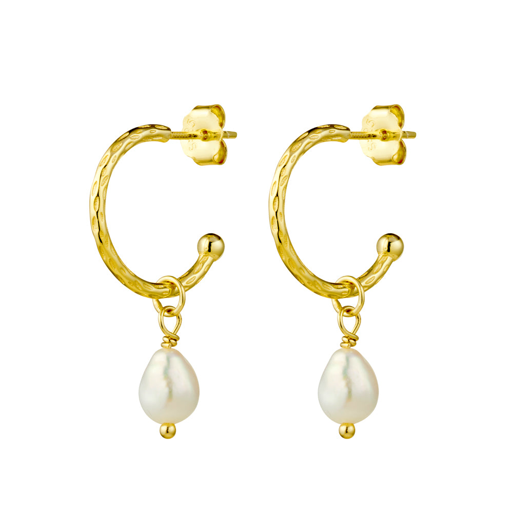 Gold Plated Half Hoop Pearl Earrings