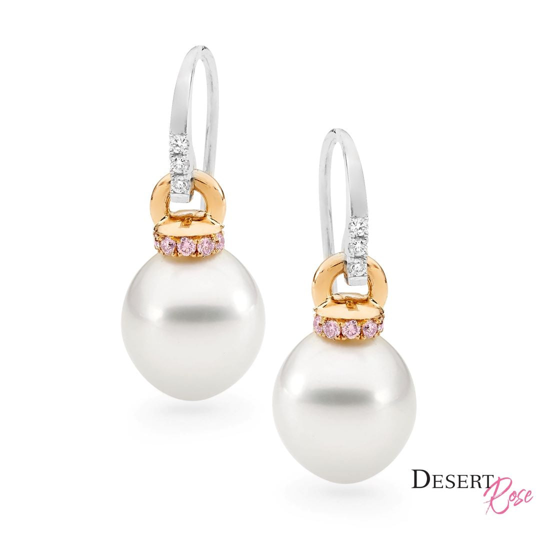 18ct White Gold Pink Diamond & South Sea Pearl Drop Earrings