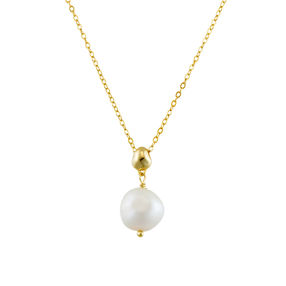 Gold Plated Petite Paperclip Link Chain with Pearl Pendant