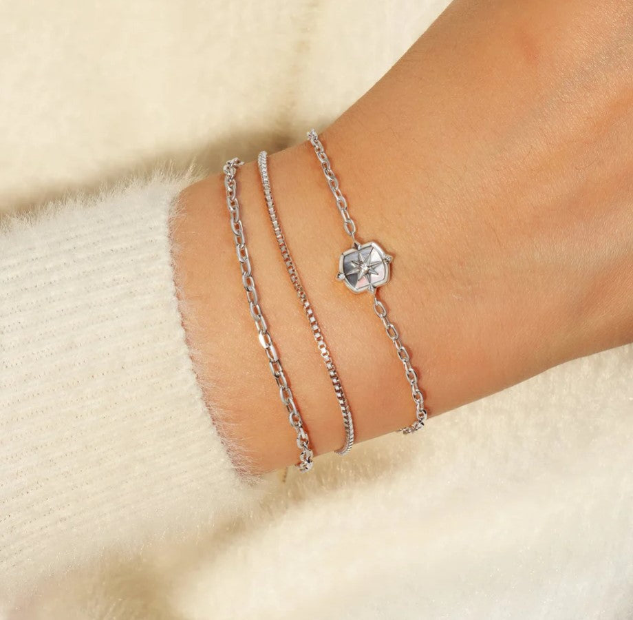 Sterling Silver Paperclip Link & Fine Cz Tennis Bracelet