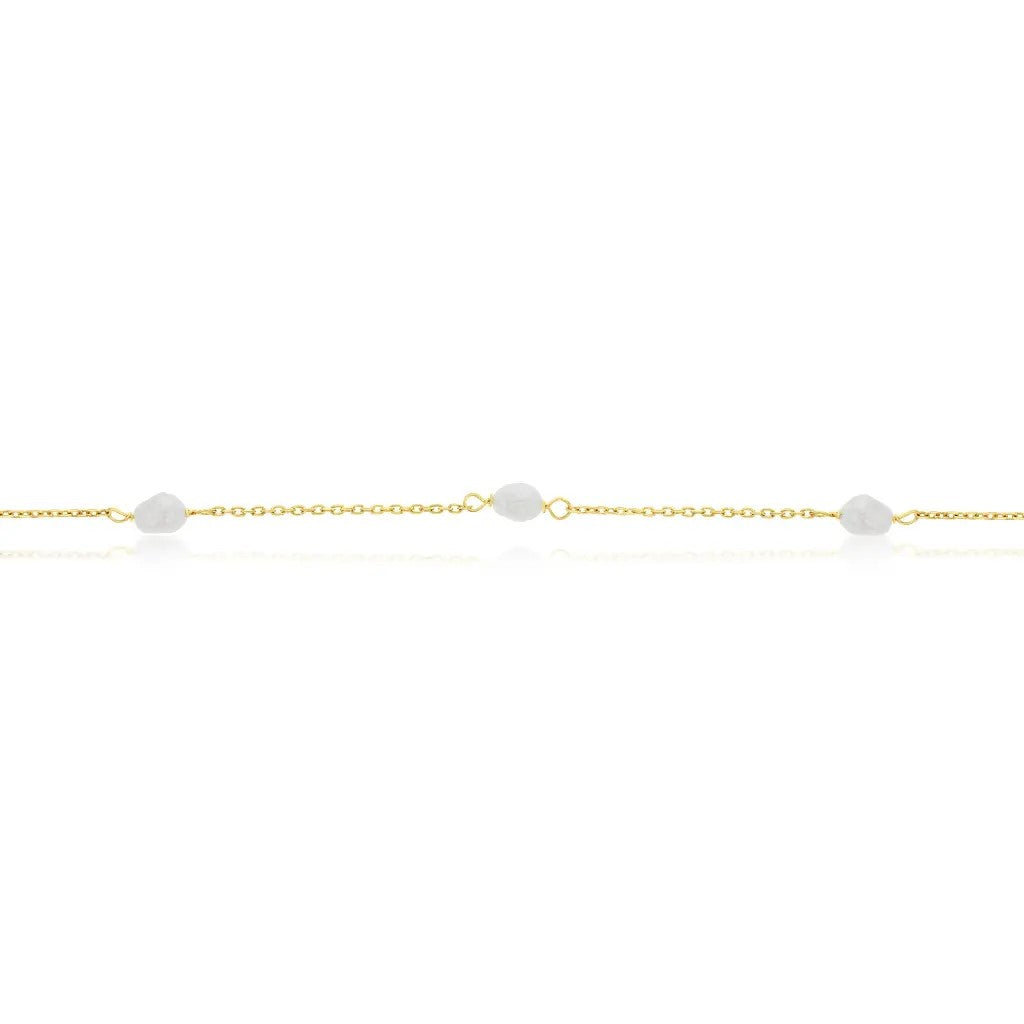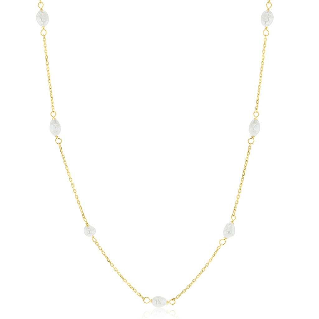 9ct Yellow Gold Fine Diamond Cut Cable Chain With 9 Baroque Pearls Evenly Spaced Through Front Section Of Chain. Pearls Spaced From 8cm In To 38cm Along.